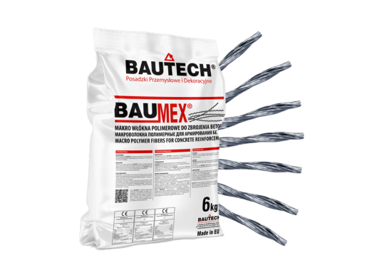 Włókna do zbrojenia betonu BAUTECH BAUMEX charakteryzują się ponadprzeciętnymi udokumentowanymi parametrami zwiększającymi wytrzymałość i odporność betonu. Posiadamy w swojej ofercie włókna o różnych parametrach na potrzeby różnych potrzeb inwestycyjnych, także włókna z powłoką antyelektrostatyczną. Rozproszone równomiernie i we wszystkich kierunkach włókna tworzą w betonie wewnętrzna konstrukcję zbrojeniową.
