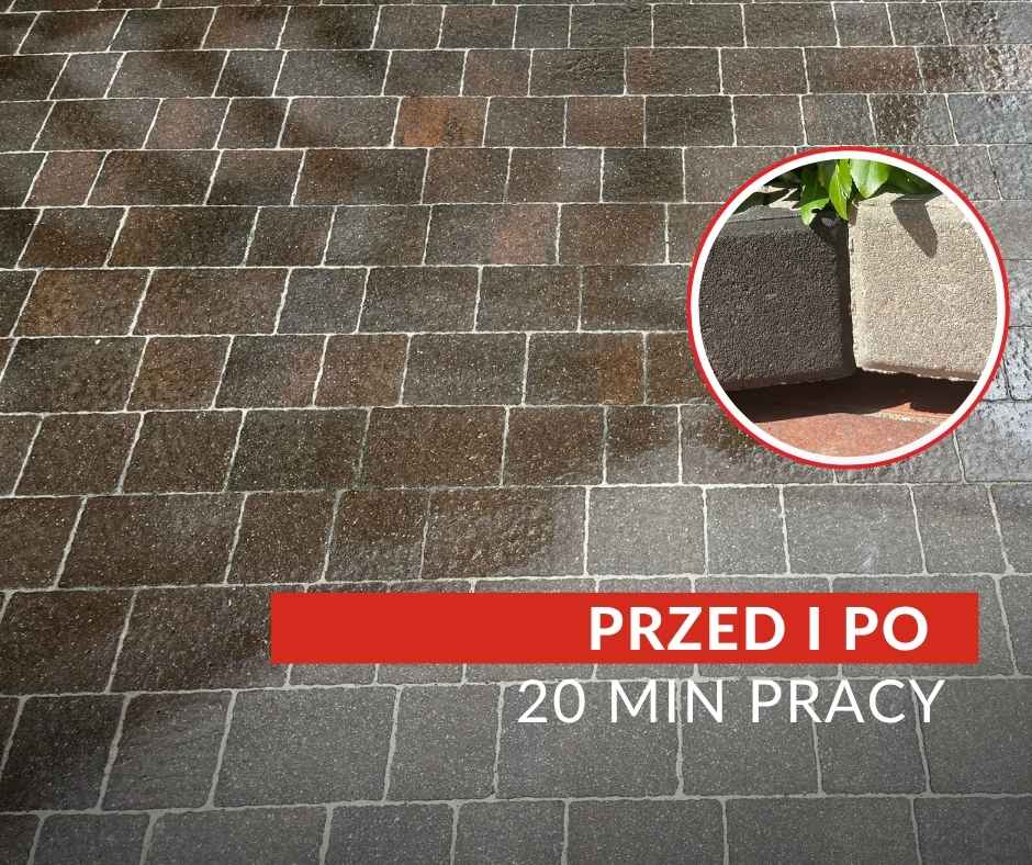 Efekt "mokrej kostki" polega na wydobyciu naturalnej barwy kostki brukowej podczas jej impregnacji, przez co staje się ona nasycona i intensywna (jak po deszczu). To prosta w uzyskaniu i niezwykle efektowna metoda szybkiego poprawienia wyglądu nawierzchni brukowych, które na przestrzeni lat w wyniku warunków atmosferycznych i eksploatacji utraciły dawny blask.